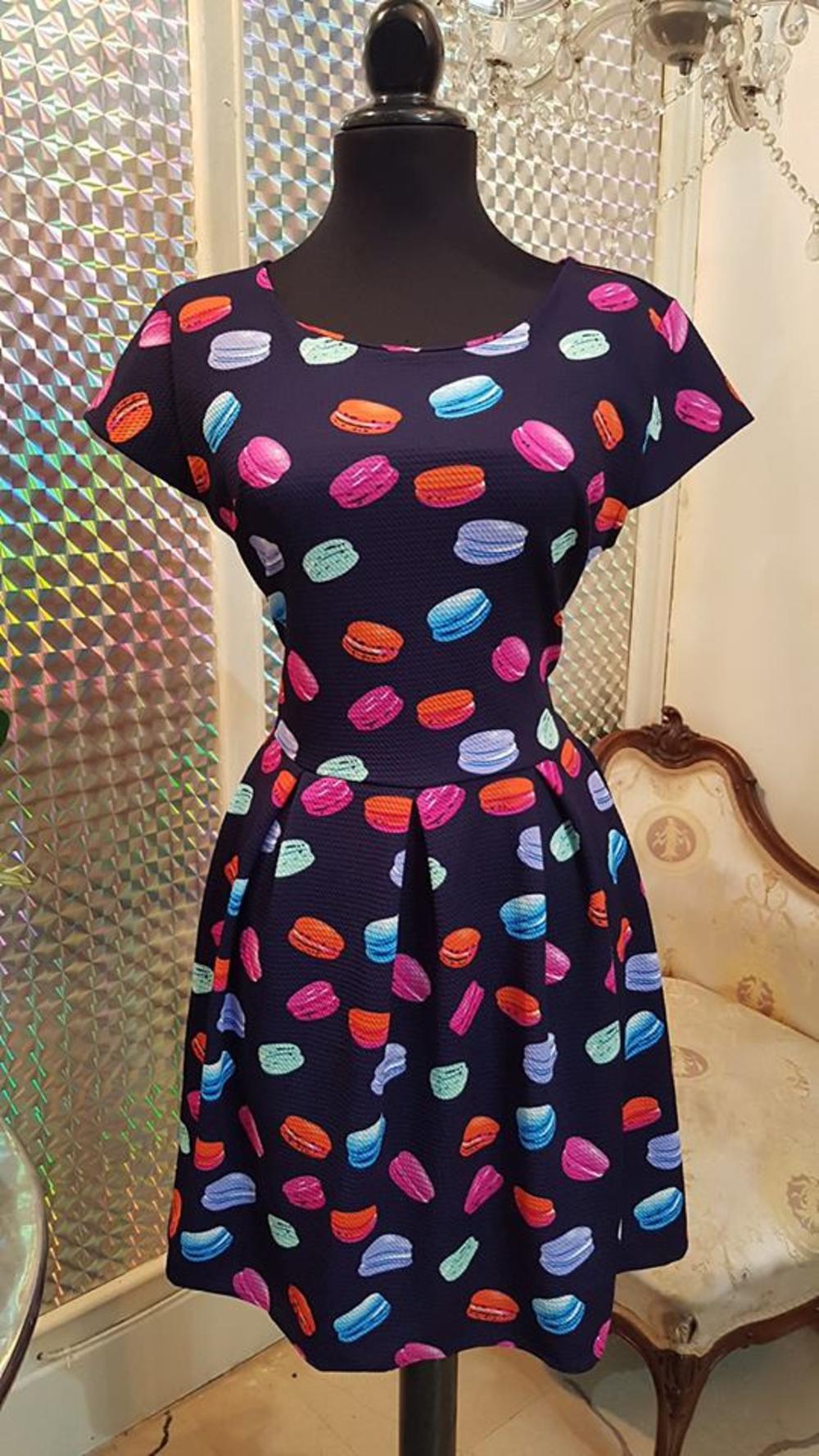 Slatka haljina sa kolačićima - macaroons haljina je pravi pogodak za leto! Veselog je dezena, i lako se uklapa u sve modne stilove. Možete je nositi i na ravnu obuću, a ako želite da postignete elegantan izgled, samo obujte visoke potpetice. Haljina lepo pristaje svim tipovima građe. OVDE je možete poručiti za 2700 rsd, ili pozvati na broj telefona 011/4420-502.