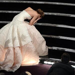 Gotovo da nije bilo čoveka koji je nije video zbog sada već čuvenog pada Dženifer Lorens na stepenicama kad je pošla da primi svog Oskara, fotografija raskošne toalete obišla na planetu, što joj je svakako pružilo dodatni publicitet – do te mere da se pričalo da je glumica pala namerno.