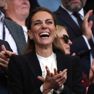 Supruga princa Vilijama, koja je odnedavno plavuša, pratila je utakmicu u odličnom raspoloženju, a za ovaj događaj je spremila business chic modnu kombinaciju s kojom nema greške.