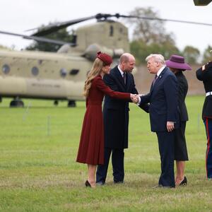Princ Vilijam i Kejt Midlton, princ i princeza od Velsa, prvi su na liniji za doček Trampovih u zamku Vindzor, nakon čega sledi svečani prijem kod kralja Čarlsa III i kraljice-supruge Kamile.