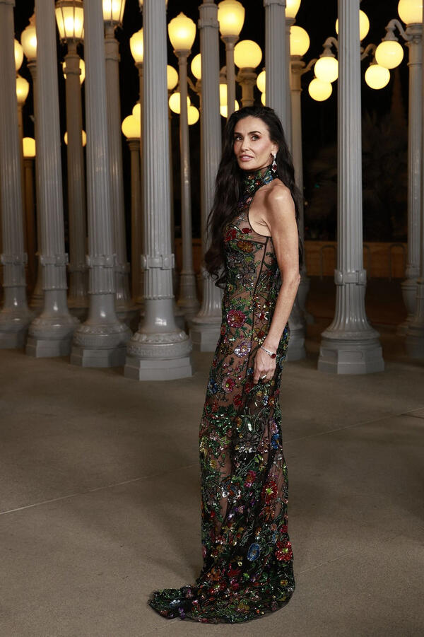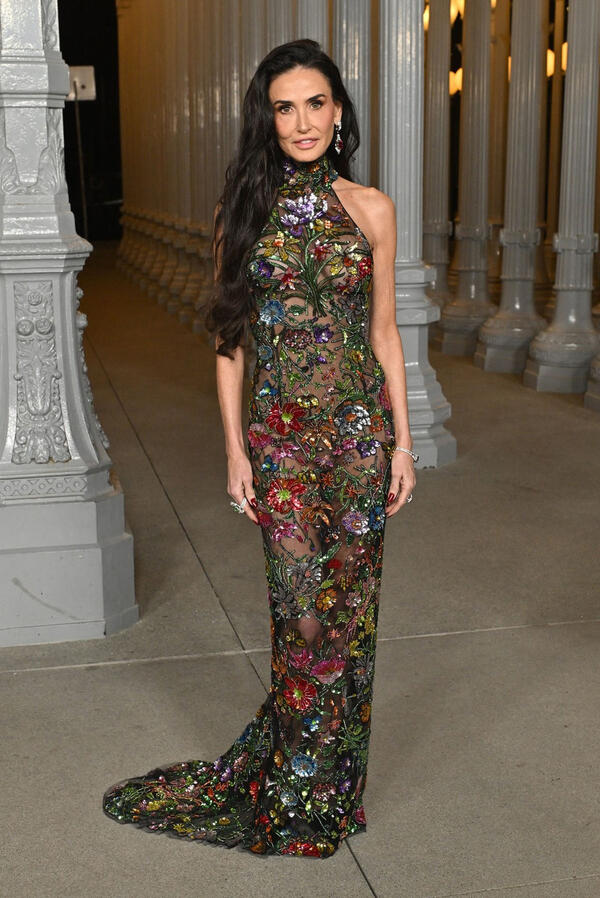 Gola haljina Demi Mur hipnotisala je Los Anđeles! Prekrivena cvećem i perlicama prati liniju tela & zrači seksepilom
