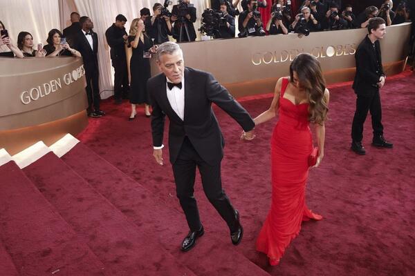 Glamur starog Holivuda na njen način: Amal Kluni očarala u crvenoj Balmain haljini na dodeli Zlatnih globusa
