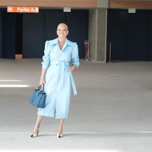 Ildin izbor je bio šik mantil puderastoplave nijanse, model klasičnog kroja i na vezivanje, s blago nabranim puf-rukavima, koji izgleda vrlo sofisticirano. Ovako otmen model traži istu takvu obuću, pa je pevačica ponela Saint Laurent salonke, u kombinaciji teget i boje slonovače.