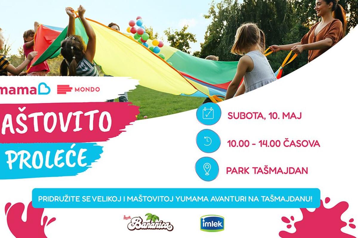 Prve subotnje zrake sunca ovog proleća rezervišite za porodično druženje na Tašmajdanu! Yumama portal poziva sve roditelje i mališane na veseli i edukativni događaj "Maštovito proleće" koji su podržale kompanije Imlek i Štark, a koji će se održati u subotu 10. maja, od 10 do 14 časova u parku Tašmajdan.