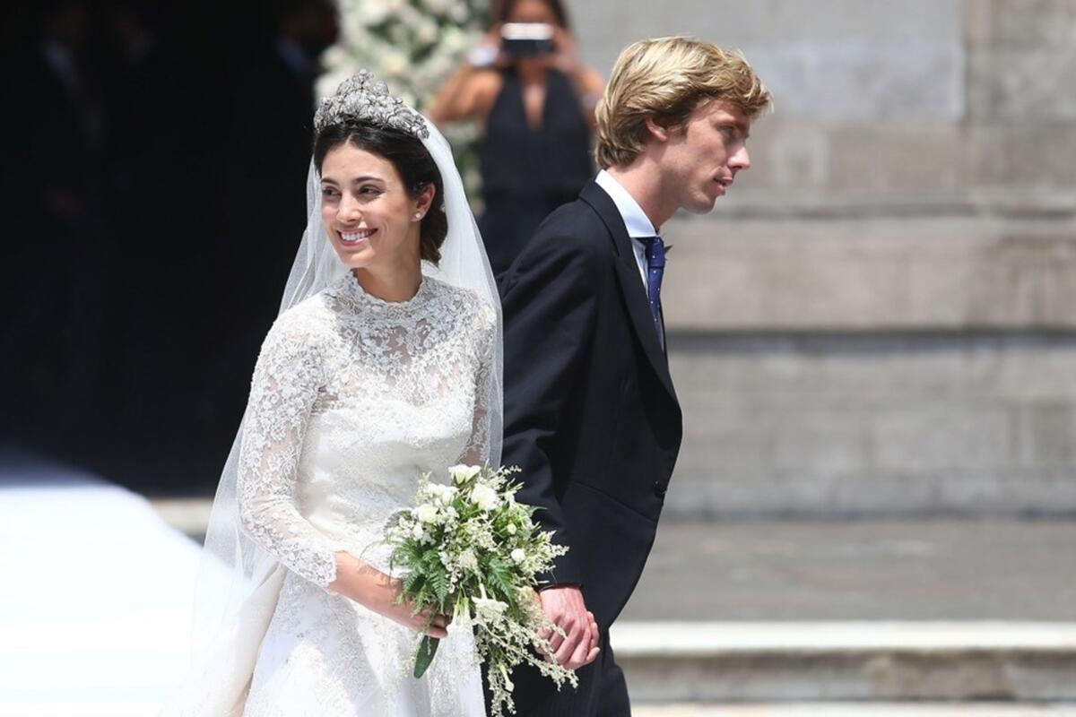 Do oltara ju je odveo otac, a na venčanju su se pojavile brojne poznate ličnosti. Kejt Mos sa tadašnjim dečkom grofom Nikolajem fon Bizmarkom, a od britanske kraljevske porodice su tu bile princeze Eugenija i Beatris.