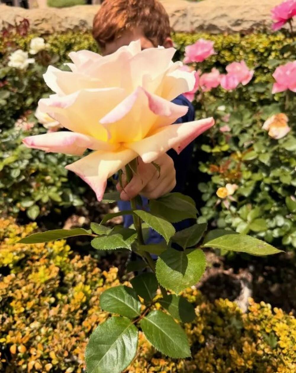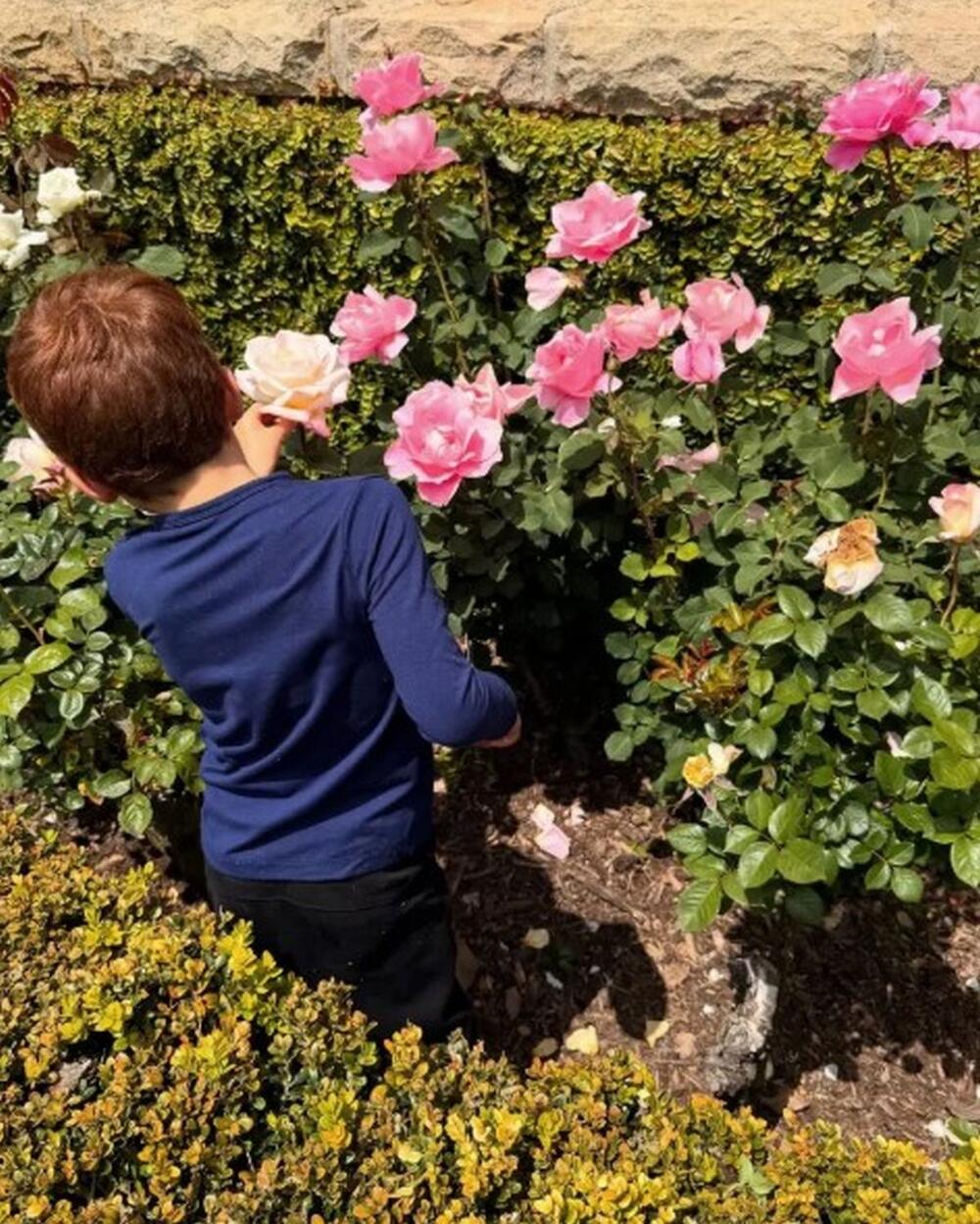 Tako je bivša glumica juče pokazala kako s decom uživa u bašti njihovog doma u kalifornijskom Montesitu, dok su mališani brali ruže.