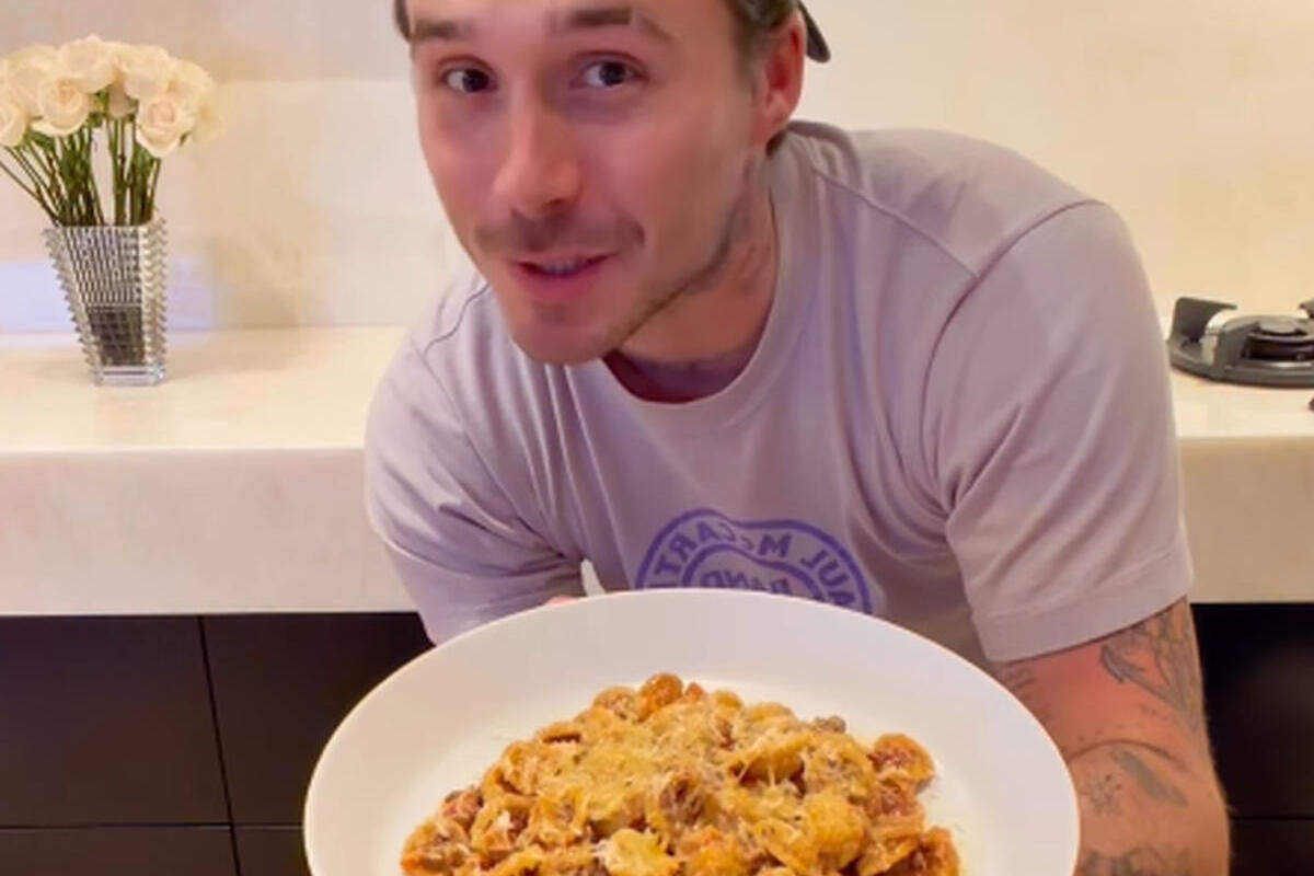 Da bi napravio svoje posebne špagete bolonjeze, Bruklin Bekam je prvo na malo ulja prodinstao iseckan crni luk, pa potom dodao iseckanu stabljiku celera i nekoliko iseckanih šargarepa.
